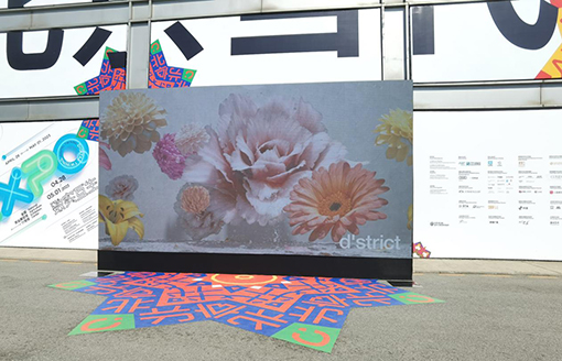 影像作為傳統(tǒng)的視覺展示平臺(tái),在還未入場(chǎng)藝博會(huì)時(shí)便已亮相。這種眾人習(xí)以為常的“展板”式應(yīng)用看似無(wú)聊,但卻往往是觀眾對(duì)展會(huì)活動(dòng)的第一印象,是展會(huì)的門面,而這一點(diǎn)也同時(shí)適用于其他行業(yè),實(shí)屬“無(wú)聊但有用”。