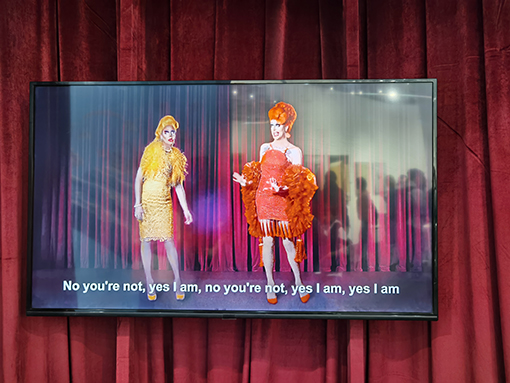 藝博會(huì)中的影像元素并不算多,然而影像作品的創(chuàng)作基調(diào)與內(nèi)核都內(nèi)涵深遠(yuǎn)。上圖展項(xiàng)同樣是僅以影像為展示介質(zhì)的視頻創(chuàng)作,它通過(guò)表現(xiàn)AI創(chuàng)造“人類”的行為不協(xié)調(diào)來(lái)暗喻人類還未到達(dá)被AI取代的地步。這些表現(xiàn)創(chuàng)作者思想的作品如果失去了影像,它永遠(yuǎn)只能是“思想”,或許它可以通過(guò)實(shí)物搭建或表演的形式呈現(xiàn),然而影像的強(qiáng)大的復(fù)刻性與傳播力賦予了作品“傳達(dá)于人”的重大意義。