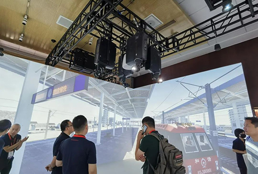 巴可作為歷屆展會中的“場景構(gòu)建大師”,本次展會也不例外。6臺投影機(jī)呈現(xiàn)一幅“數(shù)字城市”的圖景,投影機(jī)卓越的色彩表現(xiàn)力為畫面內(nèi)容增加視覺深度,在內(nèi)容呈現(xiàn)上既是應(yīng)用端的體現(xiàn),又是一種對未來科技生活的展望。