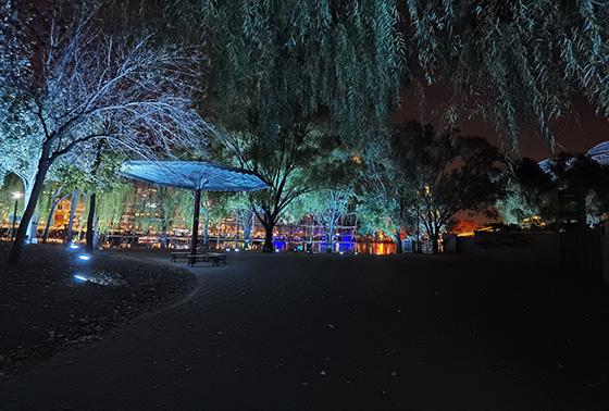 不知何時(shí)夜幕已微垂,投影之窗文旅編輯此時(shí)也已穿行于朝陽(yáng)公園的林蔭小路之間,遙望而去,斑斕的光彩指引著前路,令人神往……