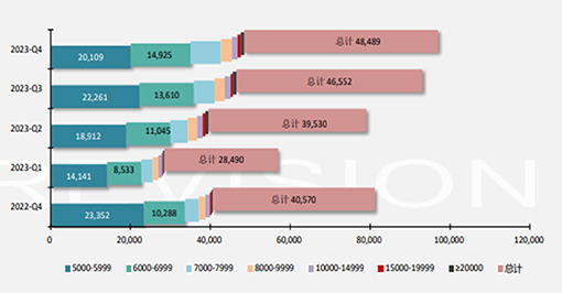 2023年,國(guó)內(nèi)常規(guī)投影機(jī)5000流明以上投影機(jī)產(chǎn)品銷售規(guī)模同比增加20%,表明文旅市場(chǎng)、高端展覽展示等需求增長(zhǎng),是唯一提升的產(chǎn)品規(guī)格類型。各個(gè)流明段都在向上一級(jí)提升。