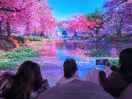 在高顯示精度、高對比度的影像內(nèi)容中,在座觀眾感受到了不同于傳統(tǒng)影院得更加近距離的視覺沖擊力;場景內(nèi)可自由移動視角,“全包裹”的數(shù)字內(nèi)容令體驗者身臨其境,全身心投入內(nèi)容體驗中,通過影像新文旅體驗實現(xiàn)更高的“情緒轉(zhuǎn)化比”。