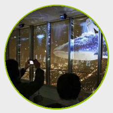 日本第一高樓“阿倍野Harukas”(位于大阪市阿倍野區(qū))觀景臺(tái)2015年11月25日啟動(dòng)3D投影活動(dòng),水族館“海游館”的鯨鯊出現(xiàn)在玻璃窗前,令人盡享魚(yú)群游弋在大阪夜空的夢(mèng)幻氛圍。該活動(dòng)將持續(xù)至2016年3月6日,從日落后到晚9點(diǎn)40分實(shí)施。投影講述了一個(gè)入睡少年在夢(mèng)中世界邂逅在空中飛翔魚(yú)群的故事。其中還有企鵝與鰩魚(yú)亮相。這些影像圍繞觀景臺(tái)4處地點(diǎn)出現(xiàn),用約10分鐘演繹整個(gè)故事。支付觀景臺(tái)入場(chǎng)券(成人當(dāng)日券1500日元,約合人民幣78元)即可欣賞投影。 |