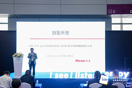 贏康科技在深圳國(guó)際會(huì)展中心12號(hào)館論壇區(qū),進(jìn)行了主題為《創(chuàng)您所想——?jiǎng)?chuàng)意/異型/超大型LED的高帶寬/無(wú)壓縮/幀同步媒體播放解決方案》的演講。