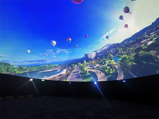 球體造型的內(nèi)部就是直徑為12米的穹頂球幕影院,贏康為其設計了球幕、投影系統(tǒng)、擴聲系統(tǒng)、播放系統(tǒng)。憑借著豐富的球幕影院項目建設經(jīng)驗,贏康能夠透徹了解客戶的需求,并根據(jù)現(xiàn)場條件,快速出具適合的設計方案,節(jié)省了反復修改方案的時間,讓整體設計落實更加順利。