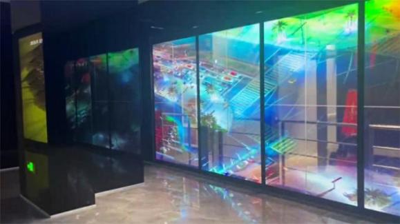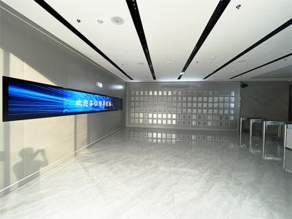 首先,是針對大廳入口的顯示系統(tǒng)完成了升級改造工作,通過OLED透明拼屏搭建顯示系統(tǒng),確保每個顯示屏的無縫拼接和精準對齊,并對顯示屏的畫面進行調整校準,最終確保顯示系統(tǒng)內容流暢精準,畫面精美清晰,從視覺層面來看,顯示系統(tǒng)帶來了令人驚艷的效果,與整體空間實現(xiàn)了和諧統(tǒng)一,營造出濃厚的科技感與智能感氛圍。