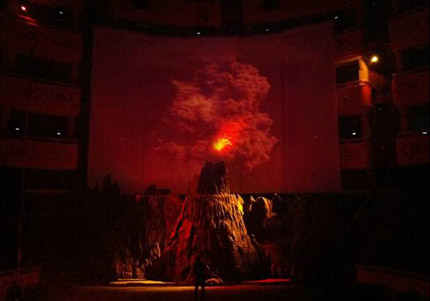 該項(xiàng)目【序幕—紗幕投影】共使用4臺(tái)安恒集團(tuán)所代理的松下LCD系統(tǒng)工程投影機(jī)PT-SLX16KC,針對(duì)6.25米*8.3米的紗幕通過豎向一次反射的安裝方式進(jìn)行投影。