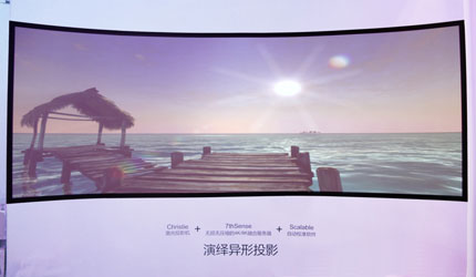 現(xiàn)代社會(huì)文化旅游領(lǐng)域發(fā)展迅速,對(duì)于異形投影的需求也就越來(lái)越高。此次贏康展示的是一個(gè)基礎(chǔ)的異形投影系統(tǒng)——弧幕投影,使用了7thSense