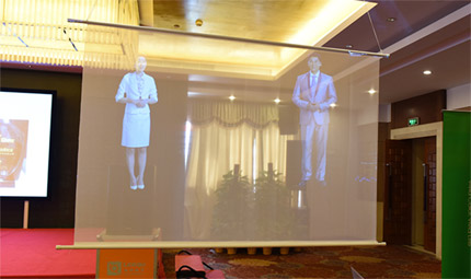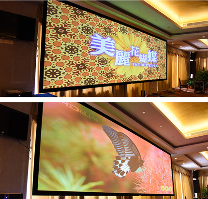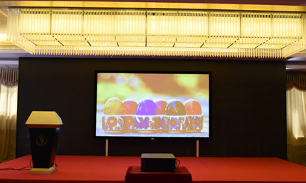 主畫面使用了1臺麗訊8000流明高清激光投影機(jī)DU8090Z、投射150寸畫面。