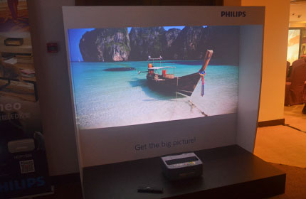 發(fā)布會上重點介紹的飛利浦“Screeneo”投影機現(xiàn)場投影效果 |