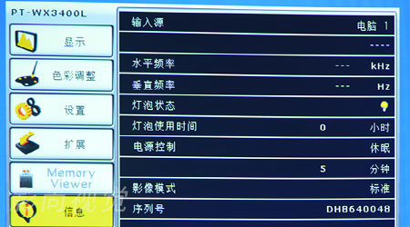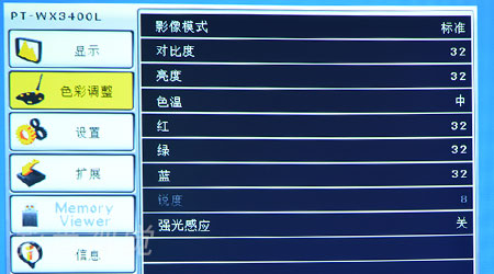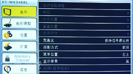 WPT-WX3400L菜單種類齊全,具有顯示、色彩調(diào)整、設(shè)置、擴展、Memory