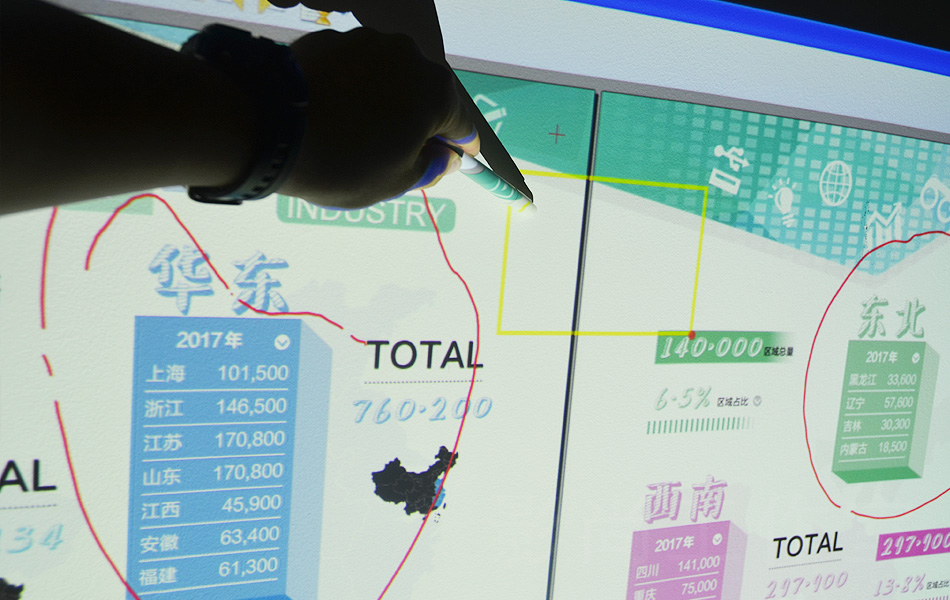 Boxlight在投影互動(dòng)技術(shù)領(lǐng)域擁有深厚積淀和專利創(chuàng)新,其開(kāi)發(fā)的紅外CMOS攝像頭、圖像處理模組、紅外光筆等都處于業(yè)界領(lǐng)先。SU236i互動(dòng)組模中的濾光片,采用世界領(lǐng) 先的鍍膜技術(shù),具有強(qiáng)抗干擾能力,不易受光線或其他雜訊信號(hào)的影響,互動(dòng)實(shí)現(xiàn)性能更好。值得關(guān)注的還有光筆,筆身采用一次成型的純銅設(shè)計(jì),經(jīng)久耐用,筆頭部分為磁懸浮觸控設(shè)計(jì),效果比機(jī)械式更好,耐用度也更強(qiáng)。我們感受SU236i的互動(dòng)功能,用USB將投影機(jī)與PC連接,打開(kāi)簡(jiǎn)潔的互動(dòng)軟件,就可以用光筆進(jìn)行書(shū)寫(xiě),標(biāo)注,非常方便。