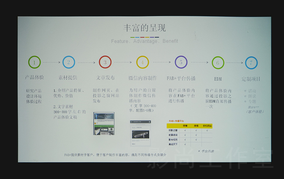 "創(chuàng)新" 永遠(yuǎn)是發(fā)展的動(dòng)力, 影尚視覺(jué)工作室的建立旨在推動(dòng)大屏幕投影可視化解決方案在商務(wù)演示、會(huì)議教學(xué)、影像工程、家庭影院、公共顯示與娛樂(lè)等領(lǐng)域的大量應(yīng)用, 挖掘潛在投影產(chǎn)品行業(yè)與用戶,提升大眾對(duì)投影可視化產(chǎn)品的認(rèn)知, 細(xì)化市場(chǎng)需求,擺脫低級(jí)競(jìng)爭(zhēng)、強(qiáng)調(diào)增值概念,增強(qiáng)行業(yè)競(jìng)爭(zhēng)力。