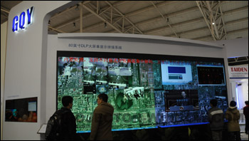 X 2)等。其展示的80英寸DLP大屏幕顯示拼接系統(tǒng)采用80英寸黑色玻璃屏幕以及智能雙燈光學(xué)引擎,內(nèi)含IPAL內(nèi)置圖像處理器。配合功能強大的IPW6800S圖像處理器,在支持原大屏幕系統(tǒng)所有功能的同時,萬能解碼功能還具有支持不同格式IP視頻流和流媒體信號的輸入。整個系統(tǒng)可提供豐富的組合顯示方式。
