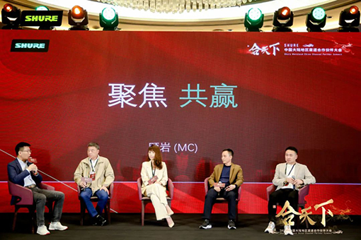 Shure中國大陸區(qū)域銷售經(jīng)理顧巖主持,與特邀嘉賓廣州暢哲音響設(shè)備有限公司總經(jīng)理王初安先生,英邁協(xié)同辦公解決方案業(yè)務(wù)總裁陳鐘先生,廣州長秦城樂器有限公司總經(jīng)理葉勁斌先生,神州數(shù)碼系統(tǒng)網(wǎng)絡(luò)業(yè)務(wù)部總經(jīng)理高珊女士,共同聚焦、探討共贏之路。