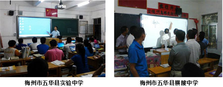 2012年7月下旬,印天E系列雙筆紅外交互式電子白板再次成功入駐梅州市五華縣,繼琴江中學(xué)、田家炳中學(xué)、五華中學(xué)三所中學(xué)之后,被安裝在實驗中學(xué)、橫陂中學(xué)兩所學(xué)校教室。為了讓教師們在暑假后能夠很好地運用電子白板開展互動教學(xué),8月初,印天科技安排培訓(xùn)師奔赴梅州市進(jìn)行兩場電子白板的專項培訓(xùn)會,六十多位老師參加此次培訓(xùn)會。