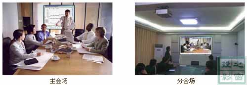 * 傳統(tǒng)視頻會(huì)議+交互式電子白板,一塊85寸的交互式電子白板取代了電動(dòng)幕,因?yàn)榻换ナ诫娮影装搴蜁?huì)議系統(tǒng)主機(jī)是交互的,所以使用者可以直接用電子筆在數(shù)字白板上操作會(huì)議系統(tǒng),可以對(duì)投到白板上的方案、股評(píng)、走勢(shì)圖等作任意的標(biāo)注或改動(dòng),而不管是本地會(huì)場(chǎng)的其他與會(huì)者,還是其他會(huì)場(chǎng)的與會(huì)者,都可以清楚、直觀的看到整個(gè)過(guò)程。