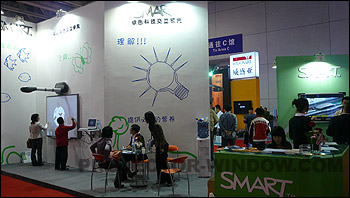 Board展示了應(yīng)用于教育領(lǐng)域的600系列交互式智能白板系統(tǒng)、V200系列交互式白板等系列產(chǎn)品。其中包括了專門針對(duì)中國(guó)教育市場(chǎng)推出的94寸的16:9寬屏交互式白板;以及最新技術(shù)的產(chǎn)品SMART