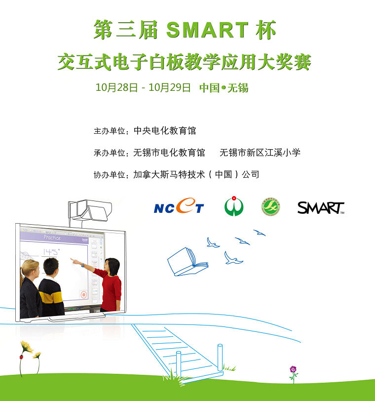 第三屆SMART杯交互式電子白板教學(xué)應(yīng)用大獎(jiǎng)賽于2011年10月27日至29日在江蘇省無(wú)錫市新區(qū)江溪小學(xué)舉行,屆時(shí)進(jìn)行優(yōu)秀課例的現(xiàn)場(chǎng)交流活動(dòng)并產(chǎn)生兩名特等獎(jiǎng),還將舉行隆重的頒獎(jiǎng)儀式。各地方教育部門(mén)、電教機(jī)構(gòu)、學(xué)校和教師參加本次活動(dòng)。 |