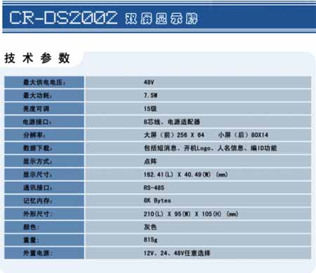 CREATOR電子桌牌采用雙面雙屏顯示設計。正面用于對外顯示與會者的身份,如姓名、職位、地區(qū)等到,支持中、英文雙語顯示,采用256X64點陣超大VFD顯示屏,具有高亮度,高清晰度的優(yōu)點。桌牌采用流線型外觀,電子桌牌的背面(向發(fā)言者),設有80x14的LCD顯示屏,用于發(fā)言者與后臺的實時信息交流,如:短信息提示、會場服務提示等。