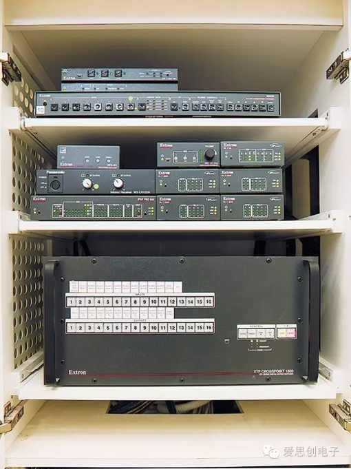 每個教室都有一臺安裝在教師控制臺內(nèi)的 Extron XTP CrossPoint