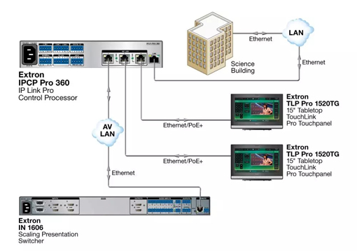Extron 電子非常高興地推出了 IPCP Pro 360,配備 3 個(gè)專用視音頻局域網(wǎng)端口和 1
