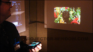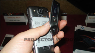 投影手機深得與會人士的喜愛,而這款正在展示的產品,機身與普通手機沒有什么差別,可見內嵌式DLP 微投的元件研發(fā)已經較為成熟。 |