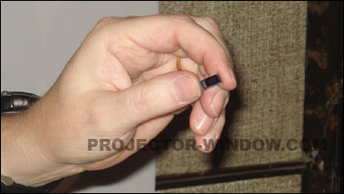 三星推出的微型投影機新品H03, 方形的小機身給人留下深刻印象。其可以配備電池使用,電池設計很纖薄,可以方便的安裝應用。 |