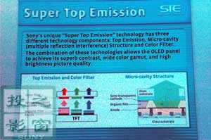 這些OLED產(chǎn)品均采用了索尼獨有的“Super Top Emission(TSE)”技術(shù),Top Emission方式,配備彩色濾光片與多重反射Micro Cavity(微共振腔)結(jié)構(gòu)三項技術(shù)的結(jié)合,從而使得OLED面板獲得出色的超高的對比度、更寬的色域范圍表現(xiàn)以及高亮度的圖象質(zhì)量。