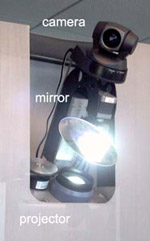 IBM推出的新產(chǎn)品帶來非常時尚的投影應(yīng)用體驗,這款名為“無界限交互顯示Everywhere Interactive Display (EID)”的系統(tǒng)包括一個投影機(jī)、一個攝像頭,以及一個電動鏡頭組件,其可以在一定空間內(nèi)創(chuàng)造出一個隨意移動的觸摸屏幕,這款系統(tǒng)可以完成多種應(yīng)用功能,比如在辦公室中的組圖繪制以及電子白板展示等等。目前,這個新的系統(tǒng)已經(jīng)在大型商場中進(jìn)行適用,其被安置在一個展示窗口中,購物者可以通過觸摸屏控制自己的圖像合成到模特的臉上,并進(jìn)行顯示。作為一個小小的娛樂系統(tǒng)為用戶帶來更多歡樂。