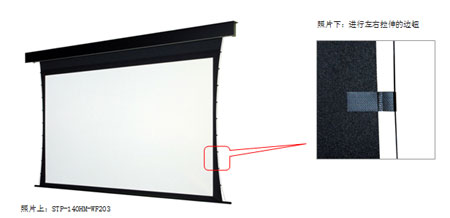 之前本公司電動(dòng)收納型產(chǎn)品SEP,利用上卷軸以及下割管之間的拉力來(lái)確保幕布的平面性,再加上張力微調(diào)裝置可以對(duì)平面性進(jìn)行補(bǔ)充調(diào)整。然而即使是這樣,左右兩側(cè)的平面性任然是最大不足。STP是通過(guò)對(duì)兩邊的邊鈕從左右兩側(cè)向橫向拉伸,實(shí)現(xiàn)同框架幕一樣的平面性特征。今后將會(huì)是我們向高端家贏市場(chǎng)推薦的一款重點(diǎn)產(chǎn)品。如需了解詳細(xì)情況敬請(qǐng)咨詢?nèi)珖?guó)各家影代理店。