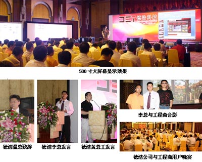 [投影之窗消息] 日前,“德浩科技(新疆站)2008大屏幕顯示系統(tǒng)新品發(fā)布會”成功在新疆烏魯木齊鴻福大飯店三樓金殿召開。德浩科技攜手比利時Barco(巴可)影像公司與全球唯一獨有等離子無縫拼接技術(shù)的韓國ORION(歐麗安)專業(yè)無縫等離子大屏幕廠家。為大家呈現(xiàn)了一系列基于高清顯示標準的高端顯示系統(tǒng)。同時也為用戶帶來了專業(yè)邊緣融合投影解決方案,