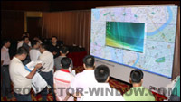 X 3米,角線達到500英寸。顯示效果氣勢磅礴。這套顯示系統(tǒng)由兩臺 Barco(巴可)公司的全新產(chǎn)品:FLM HD14 三片DLP高清投影機,并搭配邊緣融合處理器所組成大屏幕顯示系統(tǒng)。整屏形成一個完全無縫連續(xù)畫面,分辨率達到3840x1080,通過邊緣融合器的應(yīng)用,多個計算機和視頻信號可以在大屏幕上容易開窗口顯示。此解決方案是專為大型會議中心,大型場館公共顯示,