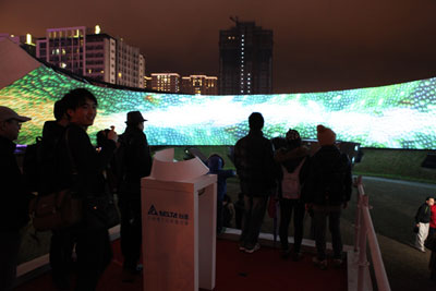 “臺(tái)達(dá)永續(xù)之環(huán)”燈體由潘冀建筑師事務(wù)所設(shè)計(jì)。潘冀建筑師表示,‘在許多國(guó)際博覽會(huì)或是iMax電影院中可見(jiàn)大型的投影,但“臺(tái)達(dá)永續(xù)之環(huán)”挑戰(zhàn)的是“戶外”的大規(guī)模投影,尤其投影銀幕造型如水袖絲綢般有著局部不規(guī)則的轉(zhuǎn)折,前俯后仰,這對(duì)臺(tái)達(dá)視訊整合團(tuán)隊(duì)是極大考驗(yàn)。“臺(tái)達(dá)永續(xù)之環(huán)”最終完成的規(guī)模相當(dāng)驚人,無(wú)縫融接后的作品讓人眼睛一亮;加上綠建筑的設(shè)計(jì)思維,堪稱全球創(chuàng)舉。’
