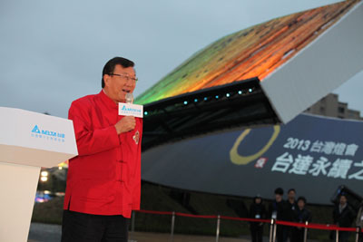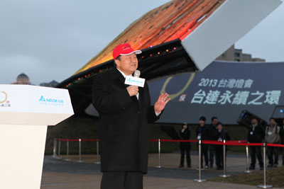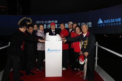2013臺(tái)灣燈會(huì)最亮眼的“臺(tái)達(dá)永續(xù)之環(huán)”舉行開幕儀式,臺(tái)達(dá)集團(tuán)創(chuàng)辦人暨榮譽(yù)董事長(zhǎng)