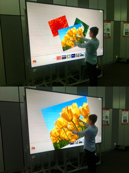 具備“觸控功能”的威創(chuàng)COB小間距LED系統(tǒng),主要利用紅外掃描多點(diǎn)技術(shù)(默認(rèn)10點(diǎn)),實(shí)現(xiàn)多點(diǎn)流暢觸摸效果,可根據(jù)用戶實(shí)際需求定制實(shí)現(xiàn)有效觸摸區(qū)域。