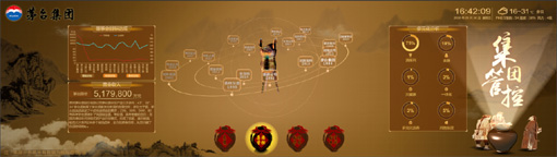 隨著酒樽的3D旋轉(zhuǎn),茅臺集團旗下26個二級子公司的營收、利潤、費用的目標值和達成率實時呈現(xiàn),各子公司的基本信息、企業(yè)介紹也可通過下鉆讀取。這就是“集團管控”可視化版塊的展示,將一系列繁雜數(shù)據(jù)、指標圖像化,清晰了展現(xiàn)了企業(yè)整體形象,便于了解與管控集團整體的經(jīng)營狀況。