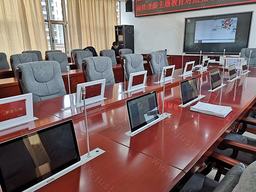 該項(xiàng)目會(huì)議桌安裝的內(nèi)嵌式桌面雙顯帶話筒升降一體終端,屏幕界面美觀、簡(jiǎn)明,操作方便,全程只需觸控屏幕即可完成會(huì)議內(nèi)容的各項(xiàng)操作,極大提高了會(huì)議效率。整套無紙化會(huì)議系統(tǒng)功能豐富,可提供會(huì)議電子簽到、會(huì)議議程、資料上傳下載、表決投票、資料共享、文檔同步閱讀、同屏投影、批注、文檔加密、電子白板交流、網(wǎng)頁瀏覽、視頻播放等多種會(huì)議服務(wù)功能。通過這種全程無紙就能貫通會(huì)議環(huán)節(jié)的會(huì)議方式,為組織會(huì)議人員和參會(huì)人員提供了一個(gè)極其實(shí)用、高效的無紙化會(huì)議平臺(tái)。