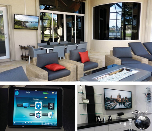 60英寸智能電視、一臺三星75英寸智能電視、一臺三星50英寸等離子、一臺康卡斯特RNG150機頂盒(STB)和一臺雅馬哈YAS-101條形音響系統(tǒng)均由可路由IR控制。最后,霍尼韋爾VISTA-128報警面板通過基于IP的擴展串口來控制,兩個OPTEX