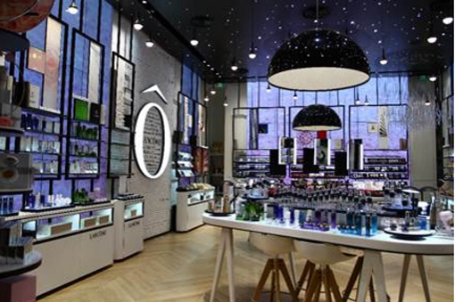 比如,在圣誕前夕的蘭蔻旗艦店內(nèi),賞心悅目的主題裝扮已經(jīng)完成,但顧客舉目觀察,卻幾乎看不見裝飾道具,原因在于整間店面的主題色均由貨架“背景板”的商業(yè)顯示屏呈現(xiàn),不僅光彩耀眼,還渾然一體,仿佛重新給門店墻面彩繪了一番,準確色彩所帶來的美好觀感遠勝普通紙面海報。
