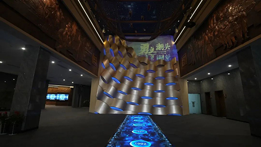 哈爾濱旅游學(xué)院展廳——9臺Venus系列高亮短焦投影機(jī)通過拼接融合,打造270°沉浸式展廳,配合畫面內(nèi)容,讓觀眾近距離感受畫面帶來的沖擊力。
