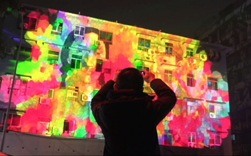 Mapping技術(shù),以中國自主“真激光”投影設(shè)備為支撐,使光、數(shù)字影像等藝術(shù)媒介語言相融合,展現(xiàn)了16個國家的130多件光影藝術(shù)作品,實現(xiàn)科技與藝術(shù)的強(qiáng)烈碰撞。
