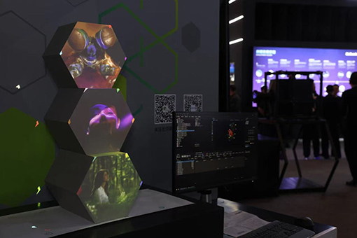 現(xiàn)場所有展品均由科視潘多拉魔盒驅(qū)動,“桌面六邊形” 演示借助潘多拉魔盒軟件 8.11 版帶來互動體驗。