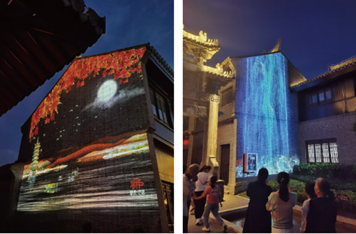 古鎮(zhèn)改造若要獲得新穎的現(xiàn)代感,沉浸式的游覽體驗,離不開當下流行的影像方案。栟茶的建設(shè)中,用戶選用了投影顯示行業(yè)領(lǐng)導(dǎo)廠商DP公司的大量高端投影設(shè)備,在保留古鎮(zhèn)人文底蘊的同時,通過商業(yè)體外立面投影、中街地面互動投影,以及夜游光影秀等項目,令古鎮(zhèn)在“修舊如故,以存其真”的同時,利用現(xiàn)代化的聲光電與影像設(shè)備營造出文化與技術(shù)交相輝映的古鎮(zhèn)新風貌,極大增強了休閑、觀賞、娛樂功能,繁榮促進古鎮(zhèn)的文化旅游事業(yè),進而帶動古鎮(zhèn)經(jīng)濟發(fā)展。
