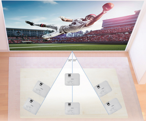 CB-X49標(biāo)配水平梯形校正功能,通過水平梯形校正滑鈕即可手動校正畫面位置,使得投影機無需正對投影幕布或墻壁從側(cè)面也可以投影,能靈活擺放在小會議室等有限空間內(nèi)。值得一提的是,CB-X49對投影介質(zhì)沒有嚴(yán)格的限制,無論是投影在專用投影幕布還是墻壁,均有很好的投影表現(xiàn),提供了更高的靈活性。