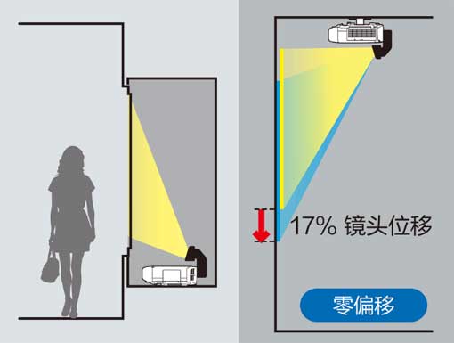 同時(shí),愛(ài)普生采用零偏移超短焦鏡頭,這一鏡頭的使用讓投影機(jī)即使在極為有限的空間內(nèi)也能安裝應(yīng)用,并投出大尺寸畫(huà)面,充分利用空間,呈現(xiàn)出更為出色的視覺(jué)效果。