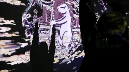在《廣寒宮》中,觀眾置身于科技打造的神話故事里,合并雙手與場景中的月宮娘娘展開互動,感受玉兔帶來的古代秘境。