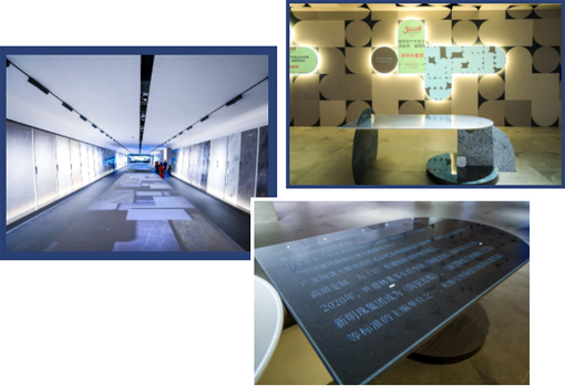 細(xì)膩的瓷磚紋理搭配潮流大氣又不失有趣的光影效果,走進(jìn)展廳仿佛步入瓷磚博物館。映入眼簾的便是企業(yè)展示背景墻,它由1臺12,000流明*1*2的愛普生激光工程投影機(jī)CB-L1515SNL搭配ELPLX02超短焦鏡頭組成,光影游走于瓷磚之上,為整個展廳營造出簡約時尚的藝術(shù)氛圍。