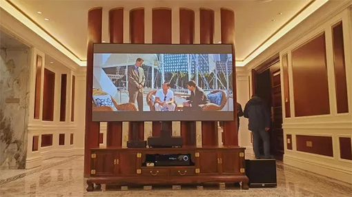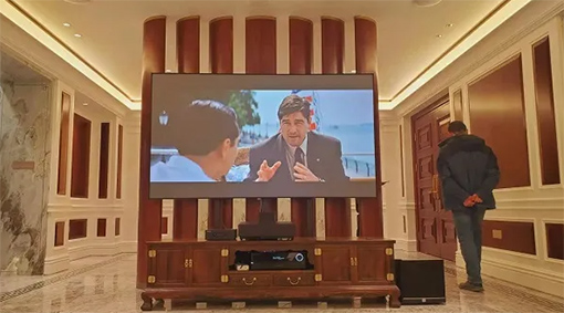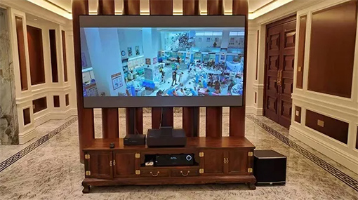 客廳紅木家具裝飾,沉穩(wěn)氣派。搭配LS500激光電視,凸顯出了現(xiàn)代和古典的融合。