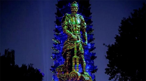 山西河津九龍公園中的九龍塔,是當(dāng)?shù)氐貥?biāo)建筑。夜晚來(lái)臨,這場(chǎng)如夢(mèng)如幻的九龍塔燈光投影秀開(kāi)啟,伴隨著音樂(lè),古塔生龍活虎起來(lái)。本次投影秀使用了32臺(tái)愛(ài)普生激光工程投影機(jī),在高45米,寬14米的塔身上創(chuàng)造了立體感十足的影像。光與影交相輝映,聲與圖相得益彰,生動(dòng)再現(xiàn)了河津歷史人文故事。